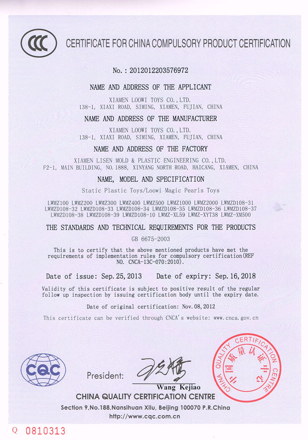 Loowi updates its 3C certificates.On 2013/09/25th, Loowi updates its 3C certificates both on Loowi Suling and Loowi Magic Pearls by increasing models of Mini Packages and Prime Packages.